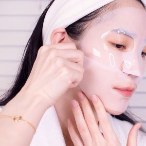 - حذف ماسک: ماسک را بهآرامی بردارید و مایع باقیمانده روی پوست را با نوک انگشتان ماساژ دهید تا کاملاً جذب شود. نیازی به شستشو نیست.